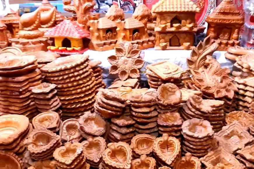 Fighting alongside the Chinese electric lights are the earthen lamps which once used to dominate the markets of Bengal