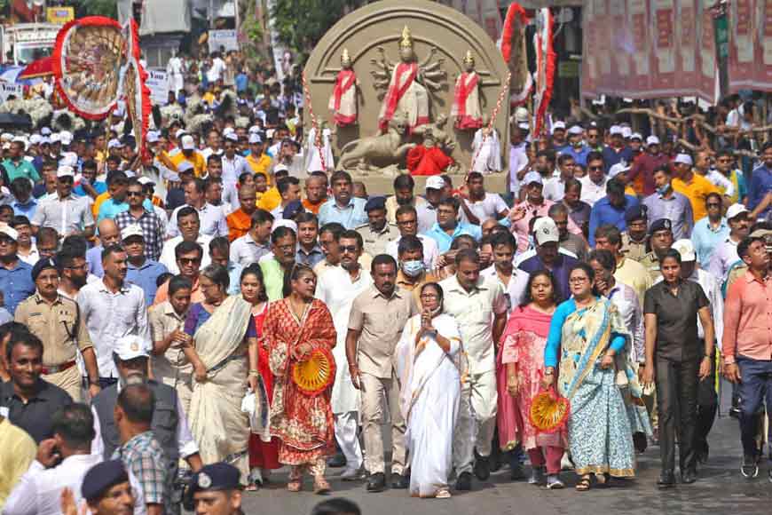 Nearly 36,946 community Durga Pujas are organized in Bengal, among which 2,500 take place within Kolkata